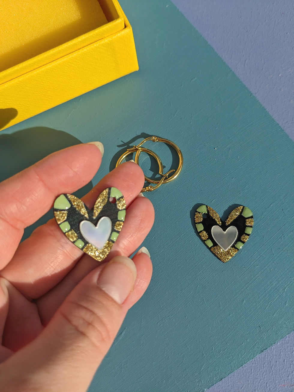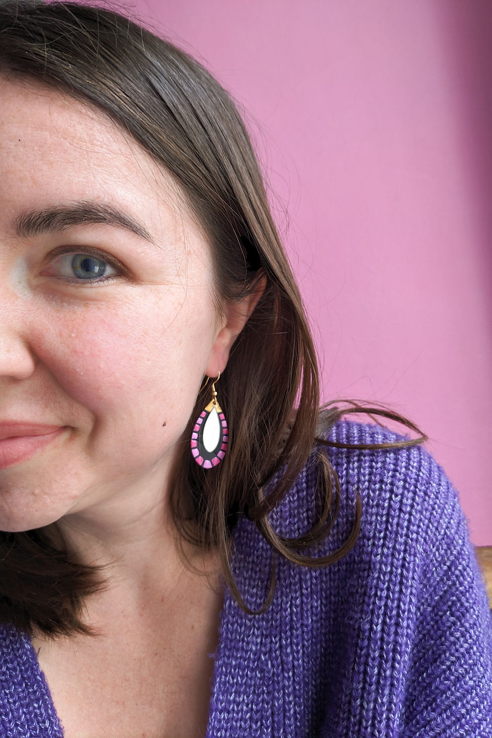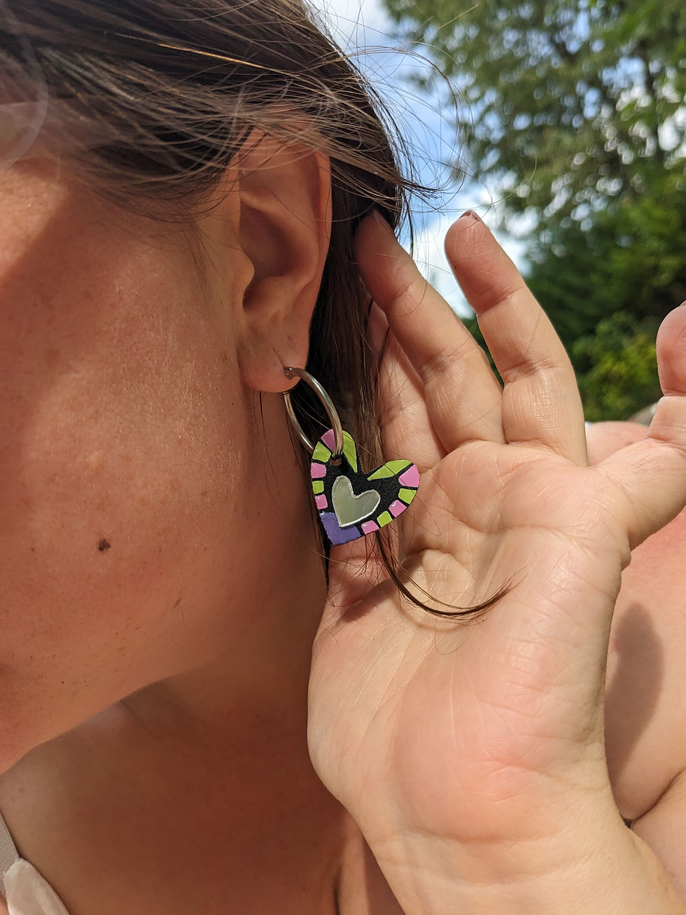 Mes boucles d'oreilles sont façonnées artisanalement et peintes à la main à partir de vieux vinyles et CD chinés en vide-greniers. N'hésitez pas à abuser des filtres pour trouver votre pépite :)